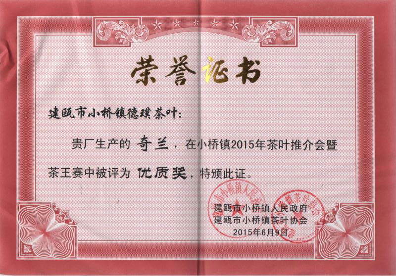 百丈岩茶场德璞茶业座落在风光如画,美丽富饶的武夷山脉小桥,环境优美,气候适宜,森林覆盖率达79.94%。 著名的“北苑贡茶”遗址之一。现主要品种有水仙、矮脚乌龙、梅占、肉桂,名枞,近几年已发展有黄观英、金观英等新品种,茶叶全部实行无公害、高标准栽培,产品主要销住日本、东南亚及欧盟一带,并在全国各地有销售网点。矮脚乌龙品种原产地域保护的申报工作已全面完成,现已申报成功。“孜孜不倦,开拓创新”是德璞茶业全体员工的追求。积极倡导“诚信如同生命,口碑重于泰山”的经营理念。我们愿成为广大客户真诚的朋友!